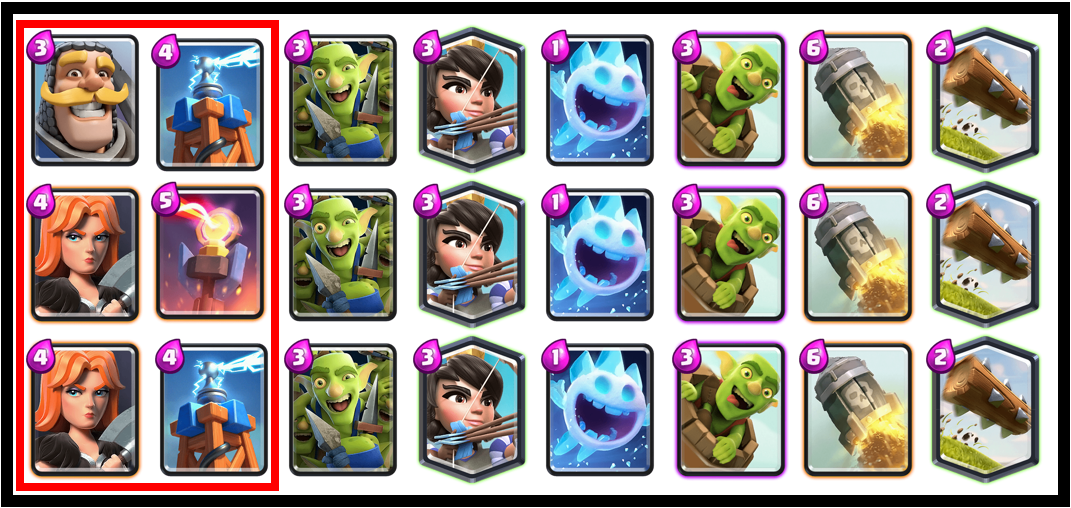 기사 ↔ 발키리, 뇌전탑 ↔ 인페르노 타워는 기호에 따라 변형하여 쓰셔도 무관합니다.