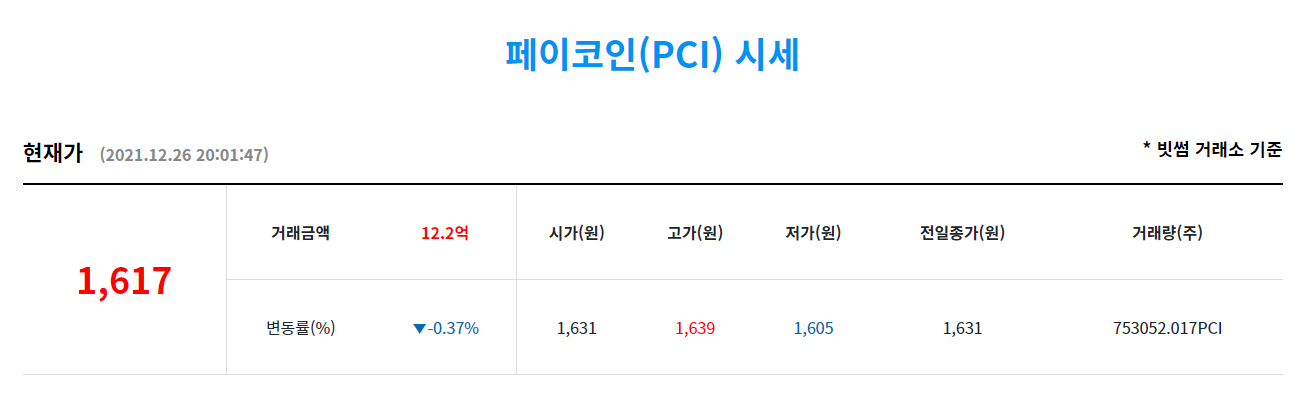 바로 코인시세부터 확인하시죠 12월 26일 기준으로 1,617원이죠