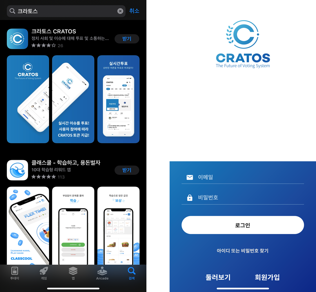 ●CRATOS(크라토스)는 정치, 사회등 실시간 이슈에 대해 투표하고 서로의 생각을 공유하는 커뮤니티 어플입니다. 추가로 앱 참여에 따라 리워드(크라토스 토큰)를 받을 수 있는 리워드앱 입니다