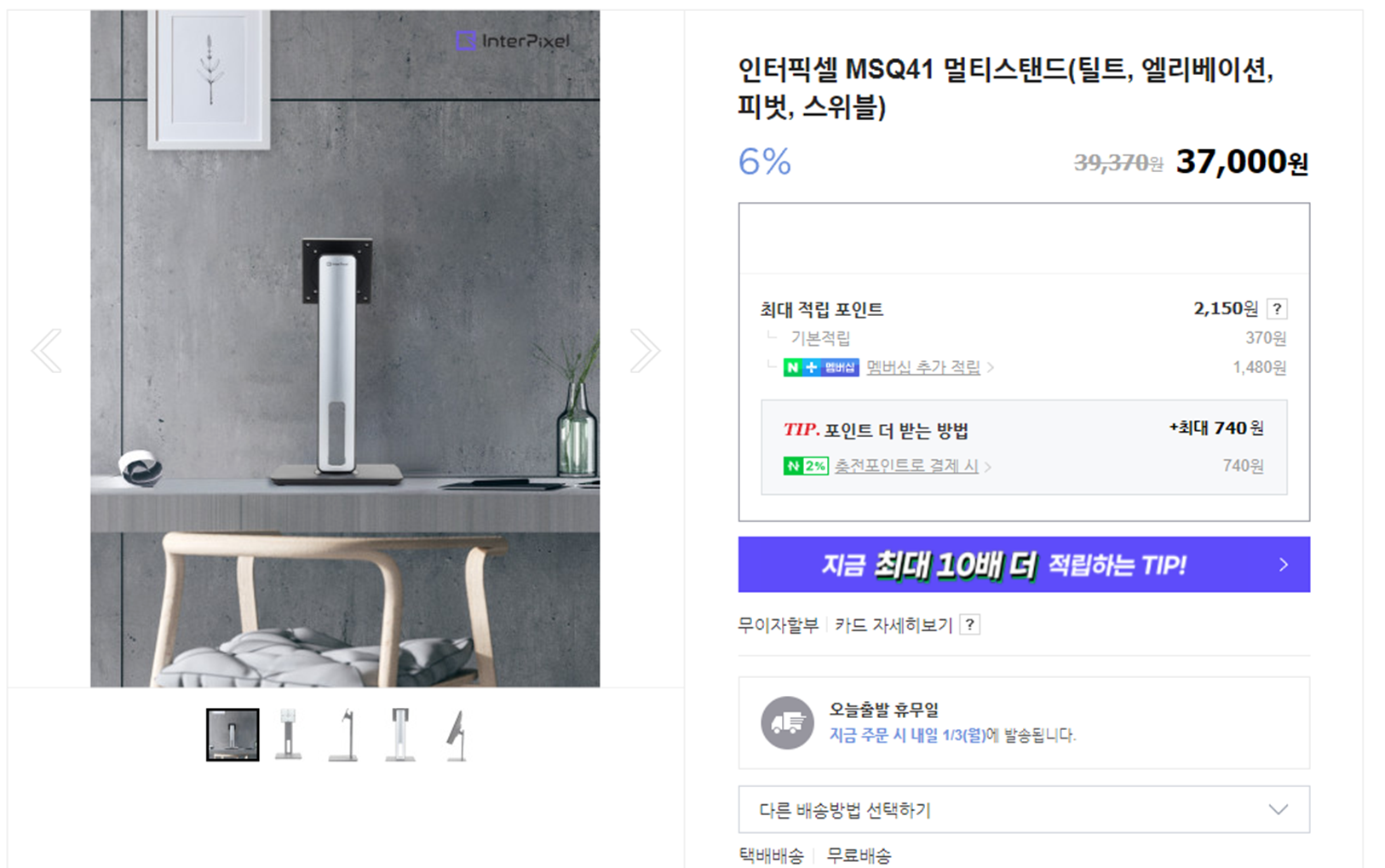 제일 큰 단점은 모니터 받침대가 V자로 되어 있어서 공간을 너무 많이 차지한다는 점인데, 그래서 결국 모니터암을 구입하려고 합니다. 모니터암을 사용 안하시려면 인터픽셀 스마트스토어에 멀티스탠드가 있으니 구입하셔도 됩니다. 하지만 가격이 37,000원으로 선뜻 구매를 못하겠네요