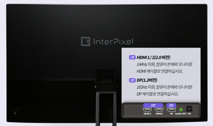 HDMI 2개와, DP 1개가 있습니다. 165Hz의 고주사율을 사용하시려면 DP선을 연결하시면 됩니다.
