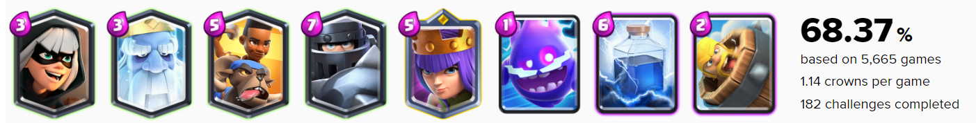 이 덱은 지진과 로얄호그 순환하는 덱으로 보시면 됩니다. 핵심인 로얄호그를 적의 앨릭서가 빠진타이밍이 잘 사용하여야 합니다. STATS ROYALE 승률이 62%나 되네요, 장난없습니다...